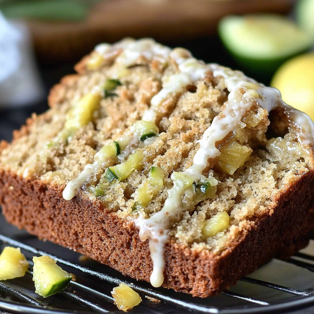 The sweet aroma of freshly baked Pineapple Zucchini Bread Loaf wafts through the kitchen, creating a cozy atmosphere that beckons