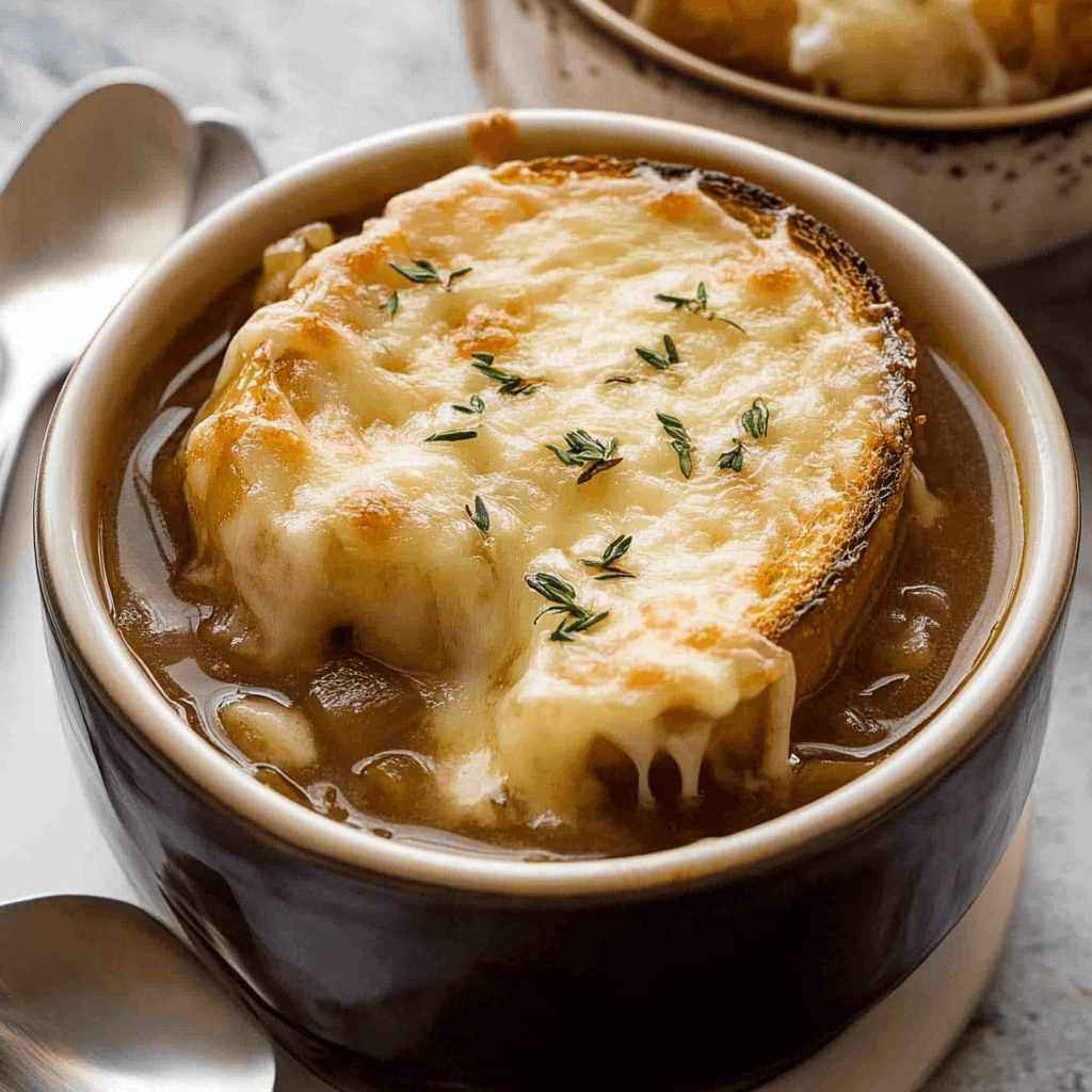 Presentation matters too. Serve your French Onion Soup in oven-safe bowls topped with toasted baguette slices smothered in cheese. Broil them just until golden and bubbly before serving for that classic look reminiscent of French bistros.