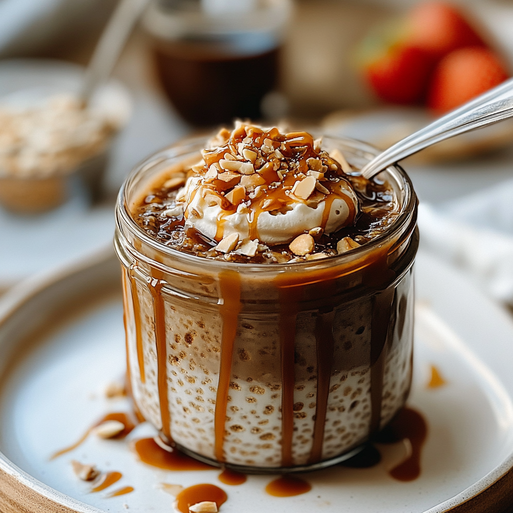 Serve & Garnish: In the morning, give your oats a good stir before serving. Top generously with caramel sauce and perhaps a sprinkle of cinnamon if you’re feeling adventurous.