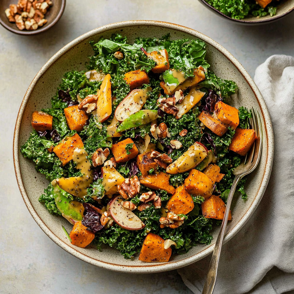 - This Sweet Potato Kale Salad with Maple Mustard Dressing is not just a salad; it’s an explosion of flavors and textures