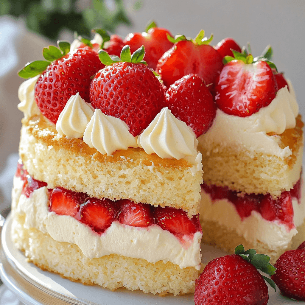 Assemble Your Cake: Place one layer of cooled cake on a serving plate. Spread frosting generously on top before adding fresh strawberries. Top with the second layer and frost the entire cake, garnishing with more strawberries as desired.