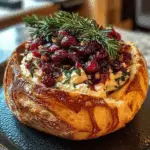 Baked Cranberry Brie Bread Bowl is a delightful appetizer that combines creamy brie cheese with sweet-tart cranberry sauce, all encased in a warm, homemade bread bowl. Perfect for entertaining or cozy nights, this dish is sure to impress with its gooey texture and vibrant flavors. Serve it warm with extra bread pieces for dipping and watch your guests dive in joyfully!