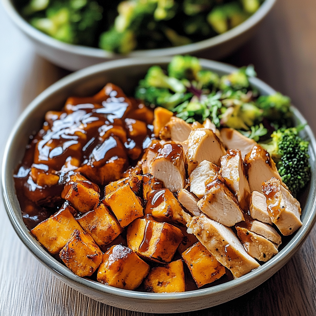 BBQ Chicken & Roasted Sweet Potato Bowls are a flavorful blend of tender, BBQ-glazed chicken and caramelized sweet potatoes. This dish is perfect for cozy dinners or gatherings, offering vibrant colors and delicious aromas that will impress your family and friends. Easy to prepare and customizable with your favorite veggies, these bowls are sure to become a staple in your meal rotation.