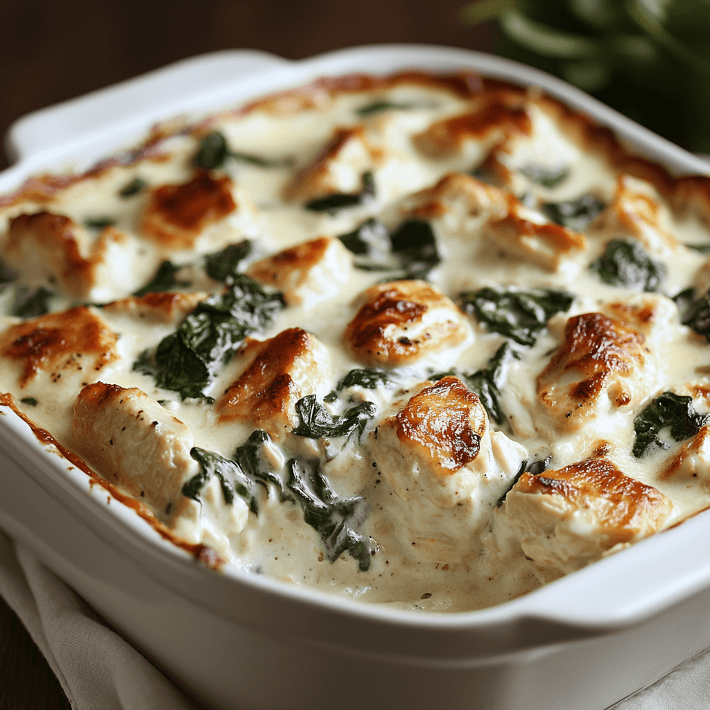 Sharing this creamy chicken and spinach casserole recipe brings back memories of family gatherings filled with laughter and delicious food, making every bite feel like home.