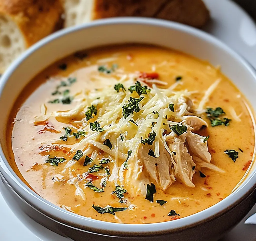 Now you have an aromatic bowl of Crock Pot Creamy Chicken Parmesan Soup that’s sure to impress friends and family alike! Serve hot with crusty bread on the side for dipping—trust me; you’ll want to soak up every last drop!