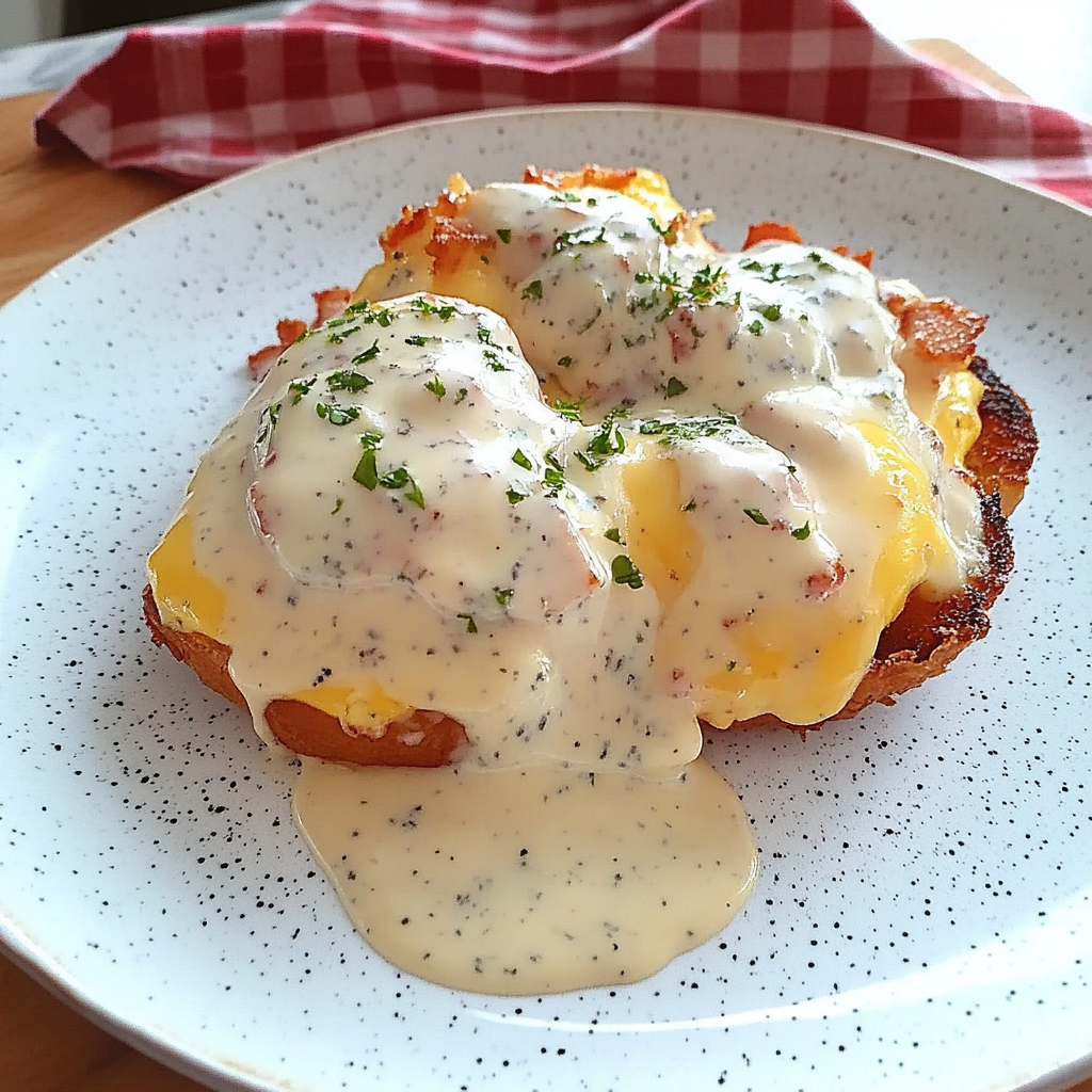 Egg Topped Hash Browns with Bacon Gravy is the ultimate comfort food, perfect for any meal of the day. Crispy hash browns provide a satisfying crunch, while rich bacon gravy smothers every bite in savory goodness. Topped with a perfectly cooked egg, this dish creates a delightful combination of textures and flavors that will have everyone asking for seconds. Ideal for lazy weekends or cozy dinners, this recipe brings loved ones together around the table.