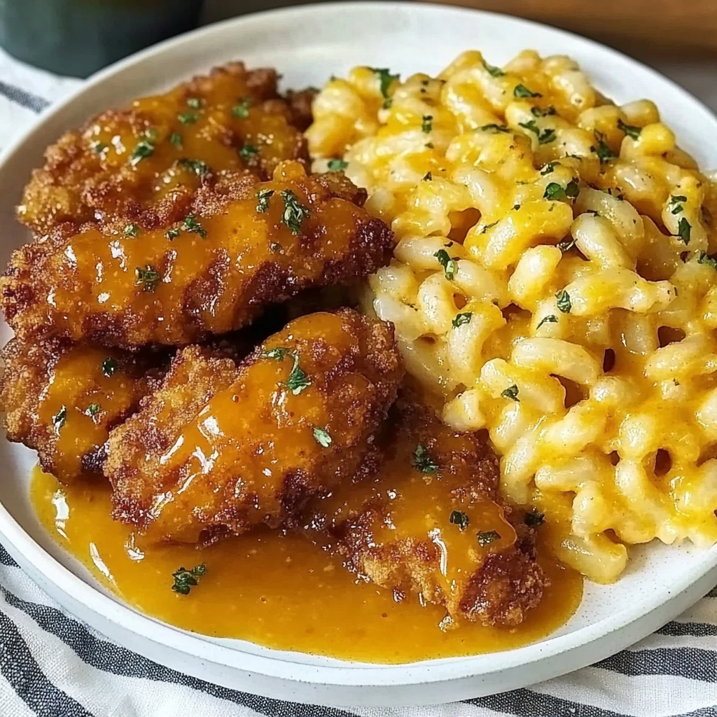 Hot Honey Chicken Tenders with Baked Mac and Cheese
