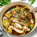 Start by seasoning the chicken pieces before browning them in a hot pan. While they sear, prepare your sauce to combine later for enhanced flavor.