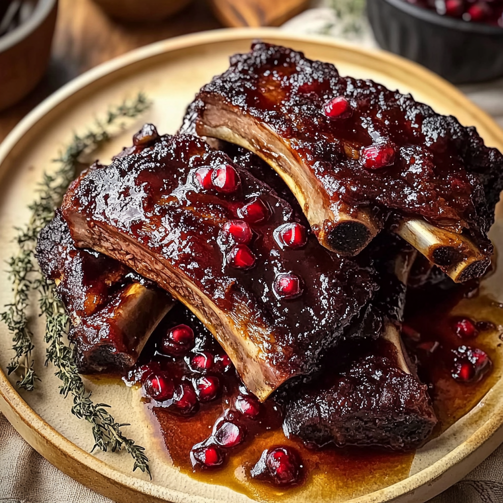 Indulge in the luxurious flavors of Pomegranate Braised Short Ribs. This dish features tender, succulent beef short ribs simmered in a rich pomegranate glaze, creating an unforgettable dining experience. Perfect for cozy gatherings or special occasions, these short ribs are sure to impress with their vibrant color and mouthwatering aroma.
