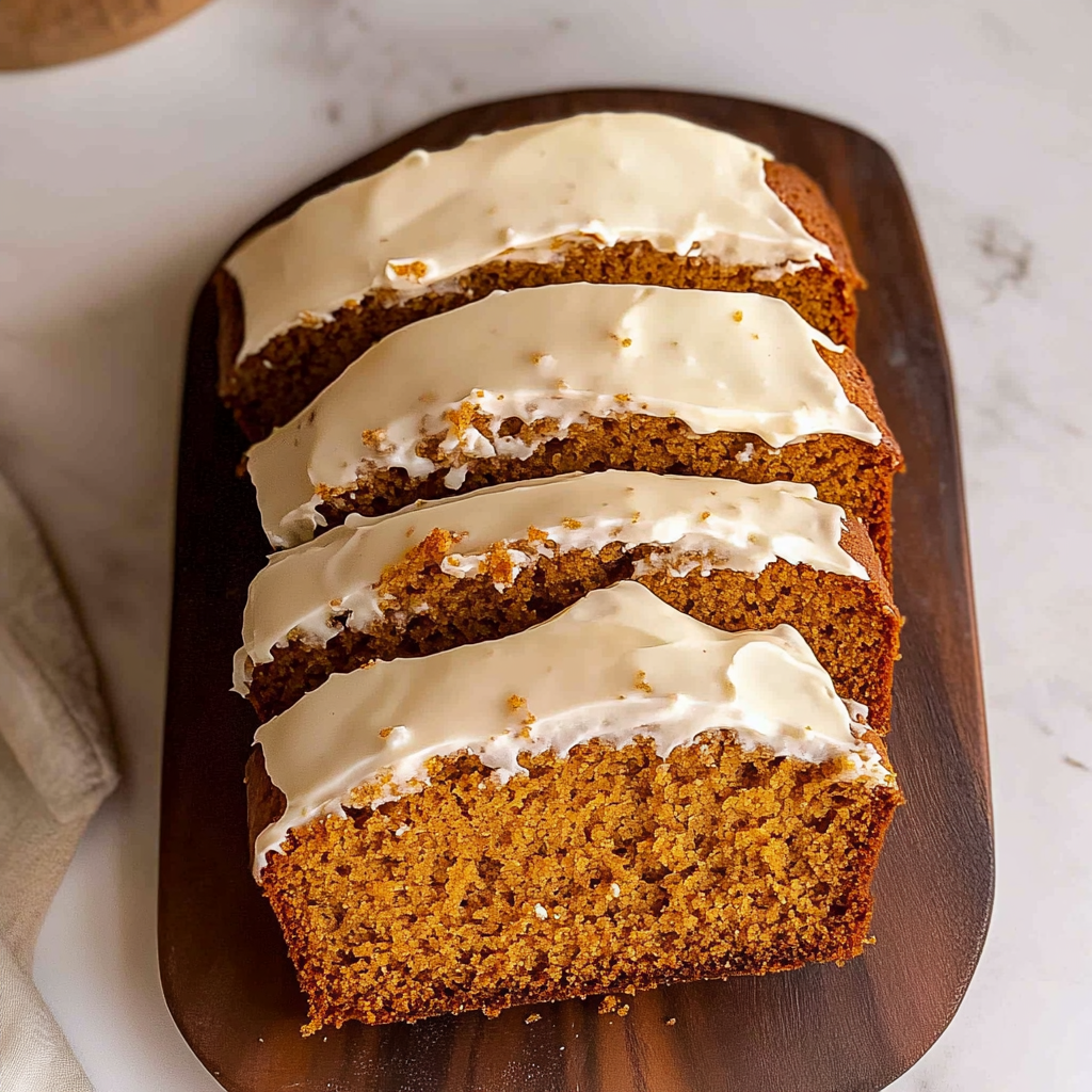 Frost and Serve : Once cooled completely, generously spread cream cheese frosting over your pumpkin bread. Cut into slices and enjoy every delectable bite!