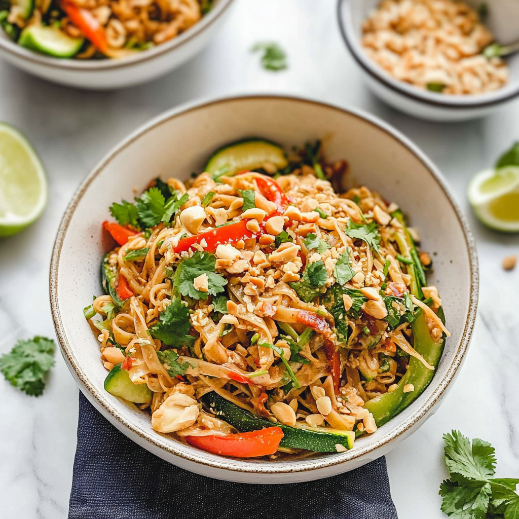 Zucchini Noodle Pad Thai is a refreshing, healthier twist on the beloved classic. Packed with vibrant flavors and textures, this dish features spiralized zucchini noodles tossed in a savory sauce, complemented by colorful veggies and protein options. Perfect for a quick weeknight dinner or impressing guests, it promises to be a crowd-pleaser that brings joy along with every bite.