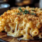 Preheat your oven to 350°F (175°C). In a small bowl, combine bread crumbs with grated parmesan and melted butter. Sprinkle this mixture generously over your mac and cheese for that crunchy contrast.